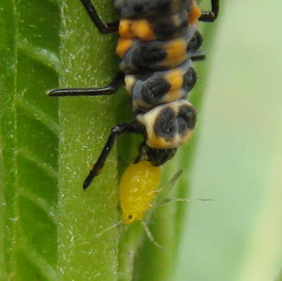 Underneath the leaf, aphids are unaware of the trouble to come.