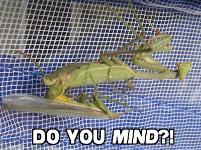 So often when I approach a mantid up close, it will turn its head and look right at me. Such was the case this time as well, and she gave me such a look, I had to caption it.
